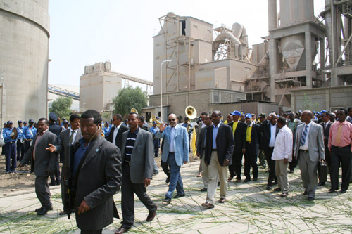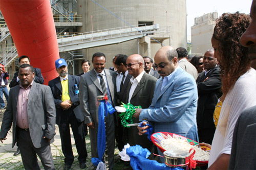 此次典礼受到中埃双方的高度重视,参加典礼的有埃塞俄比亚联邦民主共和国梅勒斯总理,埃塞俄比亚联邦工业部、卫生部和安全部部长,中国驻埃塞俄比亚大使馆韦宏天代办,中国驻埃塞俄比亚大使馆经济商务参赞处钱兆钢参赞,中国建材集团姚燕总经理,中国建材集团郭朝明副总经理,合肥水泥研究设计院徐宁院长,埃塞EFFORT集团阿巴迪CEO,埃塞Messebo水泥厂海塞总经理及中埃双方代表共逾1500人。典礼于Messebo水泥厂隆重举行,梅勒斯总理亲自剪彩和揭牌。
