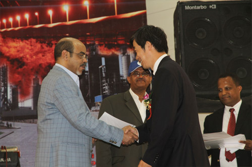 最后,梅勒斯总理向合肥院及合作伙伴分别颁发杰出贡献奖并发表致辞。他高度评价了中国公司在支援埃塞建设中发挥的积极作用,并祝愿中埃友谊长存,祝愿合肥水泥研究设计院和Messebo水泥厂蓬勃发展。