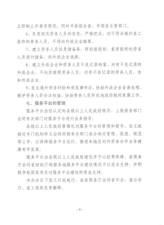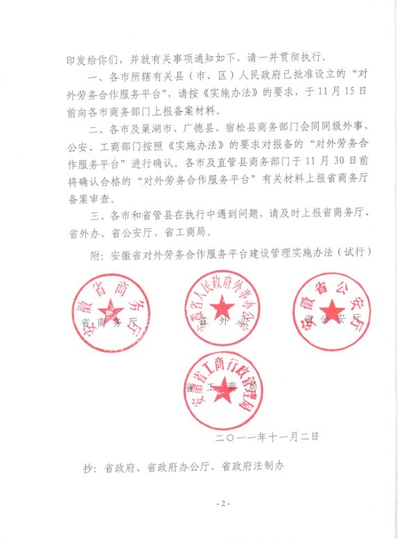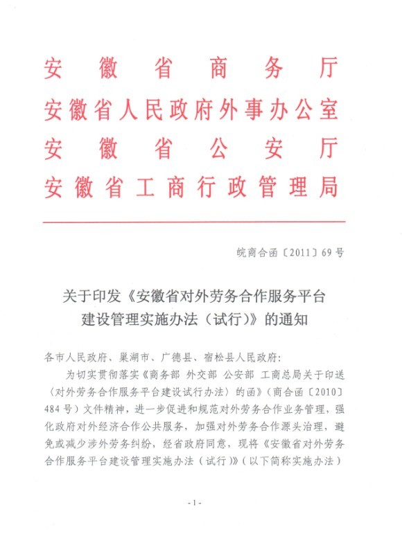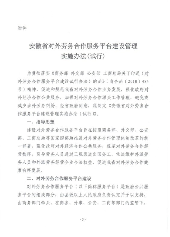 关于印发《安徽省对外劳务合作平台建设管理实施办法(试行)》的通知
