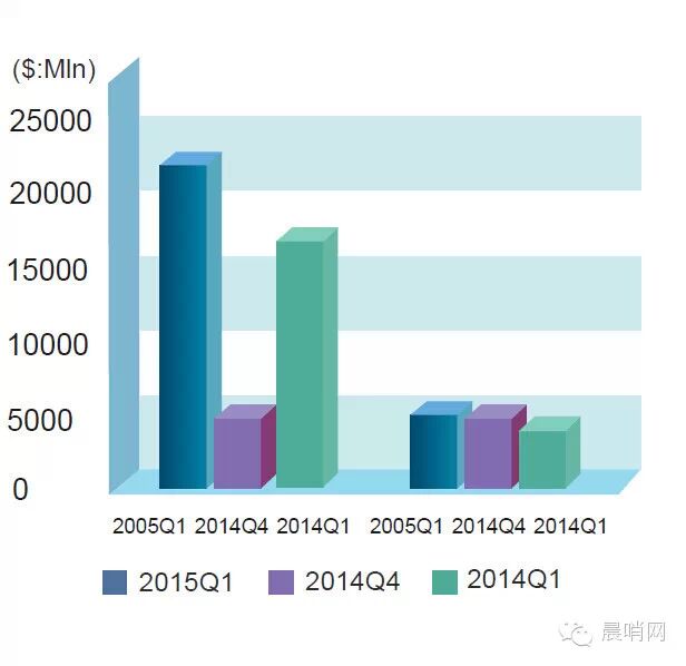 图1 2015年中资海外并购一季度数据同比环比