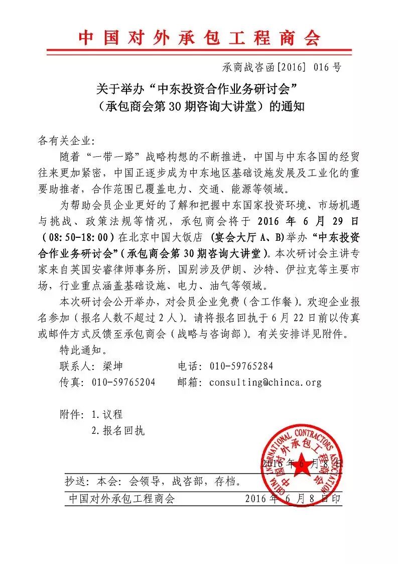 【承包商会】诚邀各路精英 研讨中东投资合作