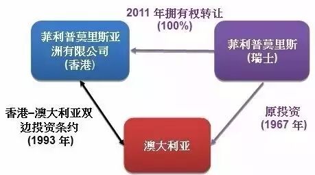 菲利普莫里斯在2011年11月就《烟草平装法案》(2011年) 提出香港 - 澳大利亚双边投资条约项下的诉求。就在提出其诉求之前不久,菲利普莫里斯在其知悉澳大利亚政府可能将要实施有关立法的时候将其澳大利亚业务转让给香港拥有权。仲裁法庭基于管辖理由拒绝了菲利普莫里斯的诉求,提出企业重组是“滥用程序”,其纯粹目的是试图寻求香港 – 澳大利亚双边投资条约项下的保护。