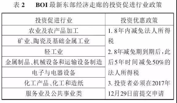 资料来源:《投资促进委员会2017年第4号公告:东部经济走廊地区投资促进标准》
