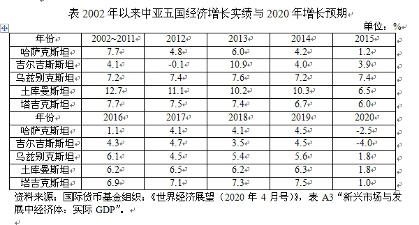 在这样的大环境下,今年暴发的新冠肺炎疫情和由此引发的石油等初级产品行情暴跌,对中亚诸国经济不啻当头棒击,中亚五国今年经济增长率都大幅下跌,本币对美元汇率大幅贬值。国际货币基金组织(IMF)4月号《世界经济展望》预计,今年塔吉克斯坦、土库曼斯坦、乌兹别克斯坦实际GDP增长率分别只有1.0%、1.8%和1.8%,哈萨克斯坦、吉尔吉斯斯坦实际GDP更分别萎缩2.5%和4.0%。6月,IMF进一步下调了包括中亚在内的全球经济增长预期。