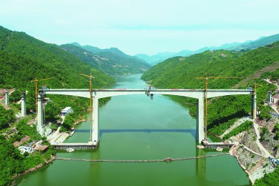 10月20日,中(国)老(挝)铁路玉溪至磨憨段阿墨江特大桥成功合龙,这也是该铁路最后一座合龙的连续梁,为全线架梁通道畅通打下坚实基础。阿墨江双线特大桥位于普洱市墨江县境内,全长617.05米,是全线施工组织难度最大、地质条件最复杂、安全风险最高的八大控制性工程之一,其主跨为216米连续刚构梁,多达132个节段,为国内同类型最大跨度双线铁路刚构连续梁,其3、4号主墩墩高均达89.5米,桥位处平均水深达48米左右,是典型的深水、高墩、超大跨度桥梁结构施工。 (刘少元 万三宝 摄)